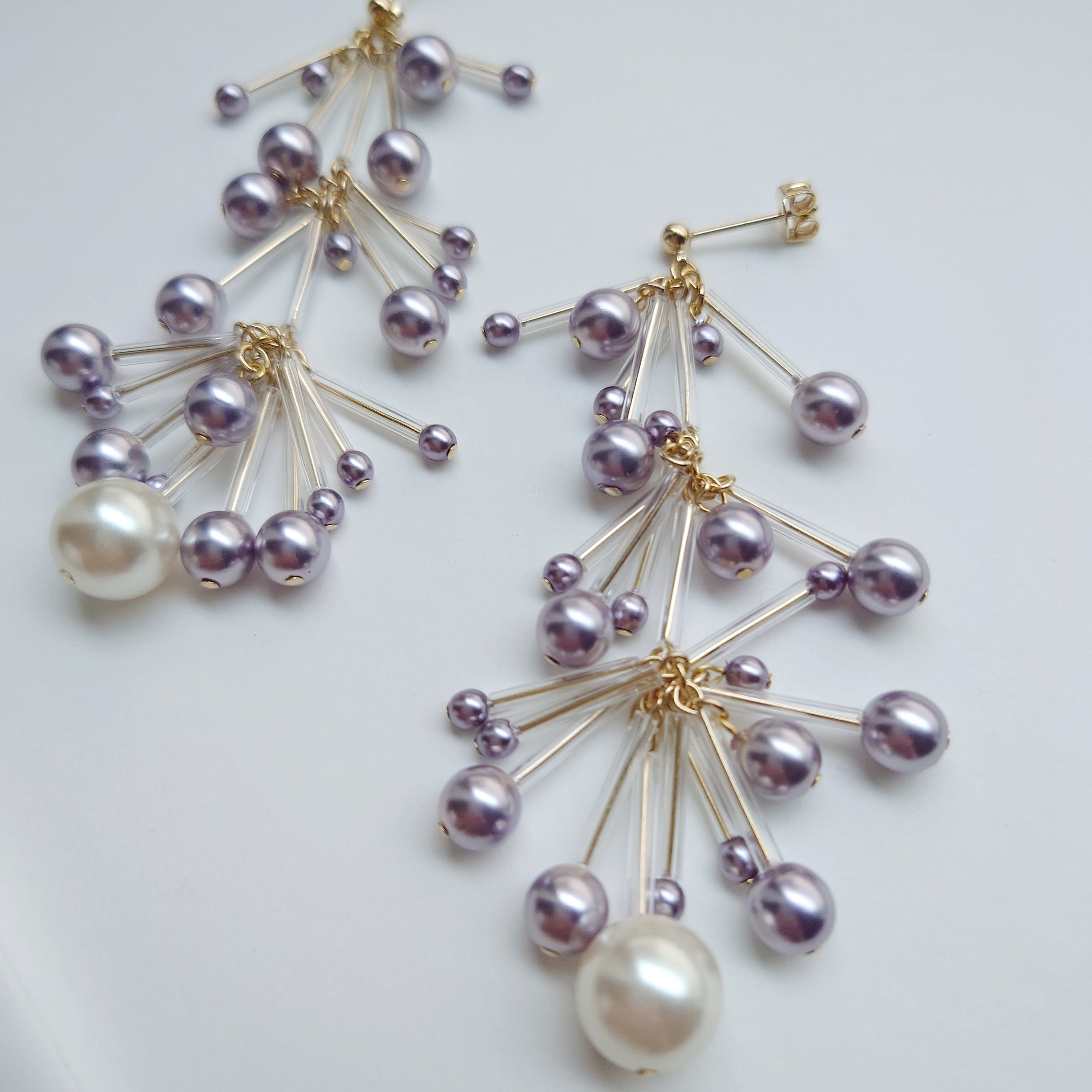 くすんだパープルのフェイクパールをたっぷり使用した、シャラシャラと軽やかで春夏におすすめのデザインです。