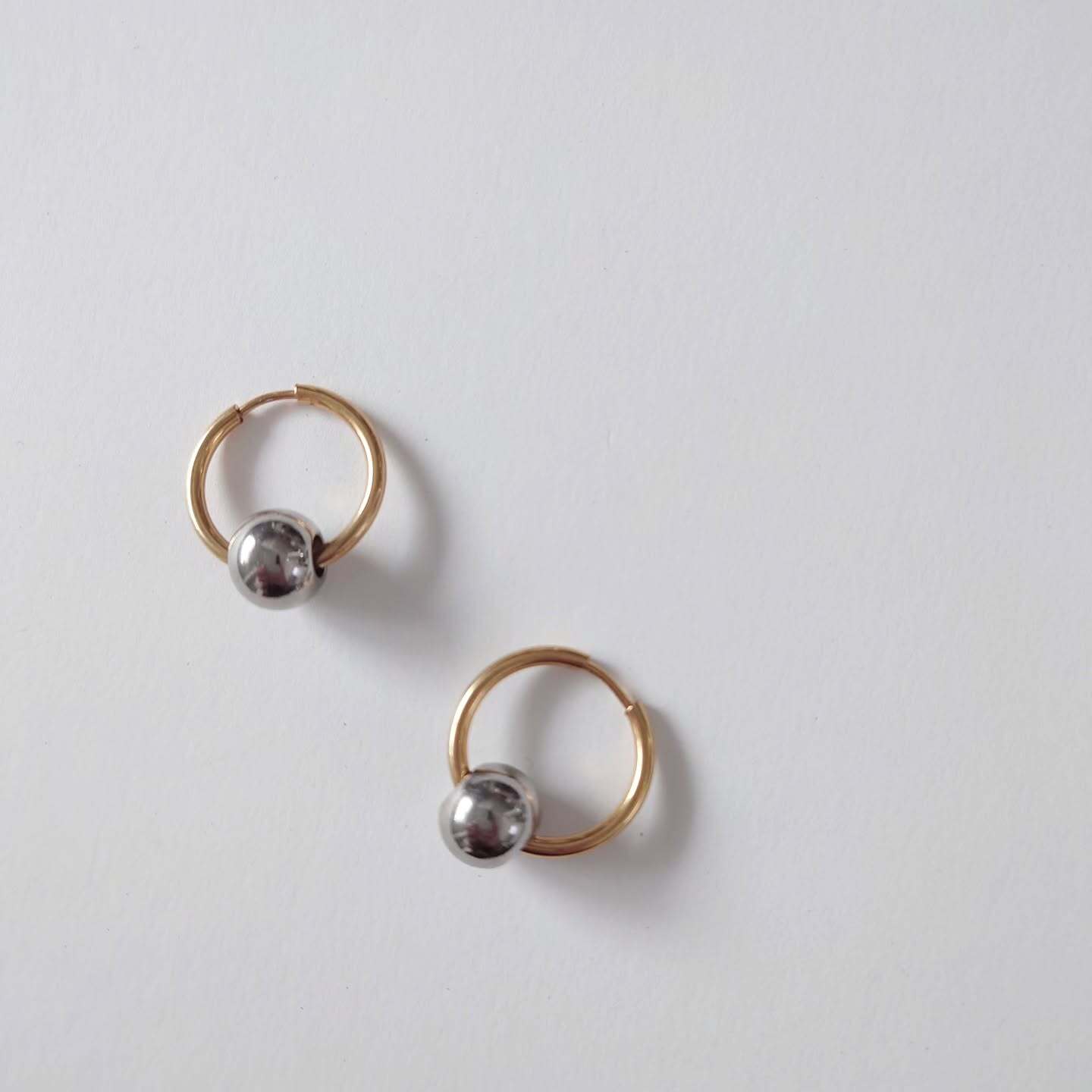 シルバーのパーツは取り外しが可能なので、シンプルなゴールドフープピアスとしても着用できる2wayデザインです。